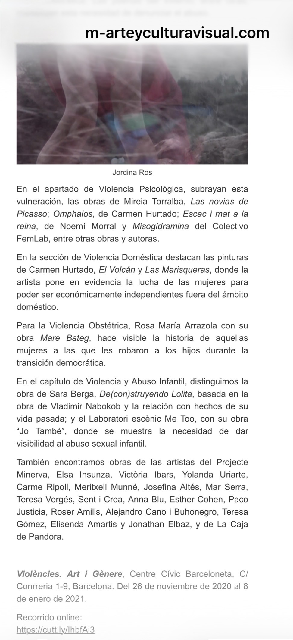 Obra en la exposición colectiva Violències, Art i Gènere. Centre Cívic Barceloneta, 2020-2021