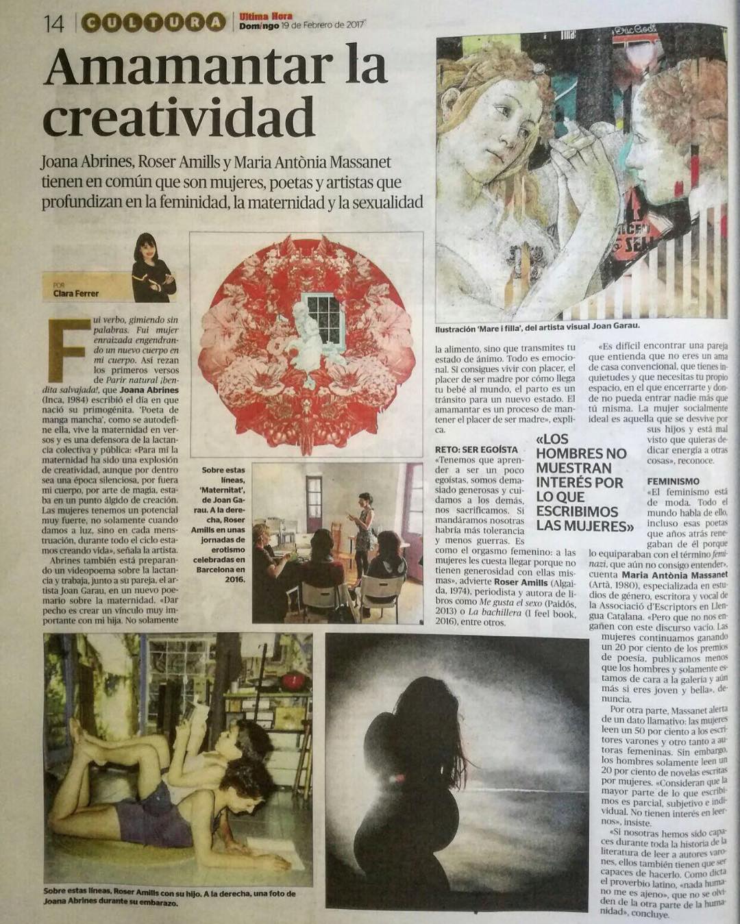 Hoy en Última Hora hablamos Joana Abrines y Maria Antònia Massanet sobre escritura y feminidadAgenda social, Antologías con Roser Amills, Entrevistas a Roser Amills, Libros Roser Amills, Obra, PARA PENSAR, Pensamiento y Acción, Recitales Hoy en Última Hora hablamos @holaquetalsoyjoana y @mantoniamassanet sobre escritura y feminidad Entradas relacionadas:Georges Perec: la cortina...Gracias Elena Mestrepor haber elegido Asja Lacis para esta primavera! Repost Elena MestreAsja Lacis ...Soy muy muy muy feliz! Lo cuento en este vídeo.Asja Lacis & Walter BenjaminAmanezco con mi #novela2017 y una satisfacción enorme: ya casi est?!"Paraules d'amor", 9 de juny a VICLa Vitàlia ha fet un amic nou, Oscar Mor? ja està llegint les seves perip?cies i secrets! Fes bondat...Errol Flynn a bordo del Zaca pantal?n corto"La poesia és una pipa" André Breton i Paul Eluard Día Mundial de la PoesíaCatalunya ràdio | aquí teniu Malen Gual del Museu Picasso i Joan Gil, a Les mil i una nits per parla...anteriorGracias a Clipster BCN, Roser Amills descubre The Get Down de NetflixsiguienteMuy buenosdíasy benditos domingos loquitos #amillsmorning Deja una respuesta Cancelar la respuestaTu dirección de correo electrónico no será publicada. Los campos obligatorios están marcados con *Nombre * Correo electrónico * Web Comentario * Guarda mi nombre, correo electrónico y web en este navegador para la próxima vez que comente.