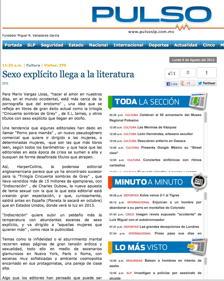 Pero antes de que llegue la que dicen será la novela más tórrida del otoño, el mundo editorial, que ha visto cómo le afecta la crisis de lleno, con un importante descenso de ventas, está llenos de títulos con contenido subido de tono, erótico, sexual o morboso, que de eso también hay.