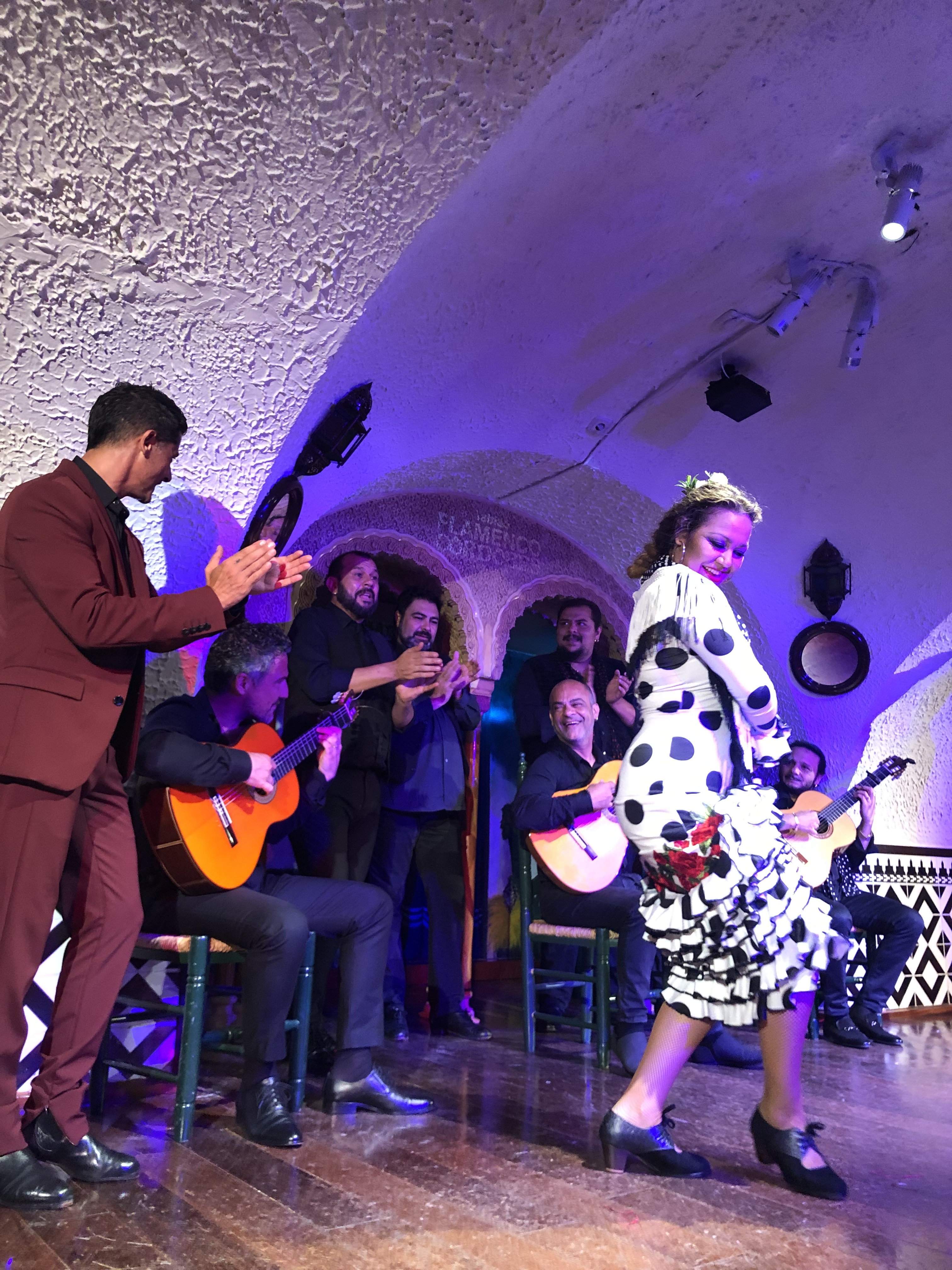Como era previsible, disfrutamos una noche inolvidable. El show es emocionante, de arrancar suspiros, y nuestra mesa en el tablao, justo al lado del escenario, nos ofreció una visión tan cercana de los guitarristas, el cajonero, los cantaores y la bailaora… que nos sumergimos por completo. ¡Cuanta pasión y energía sobre el escenario!